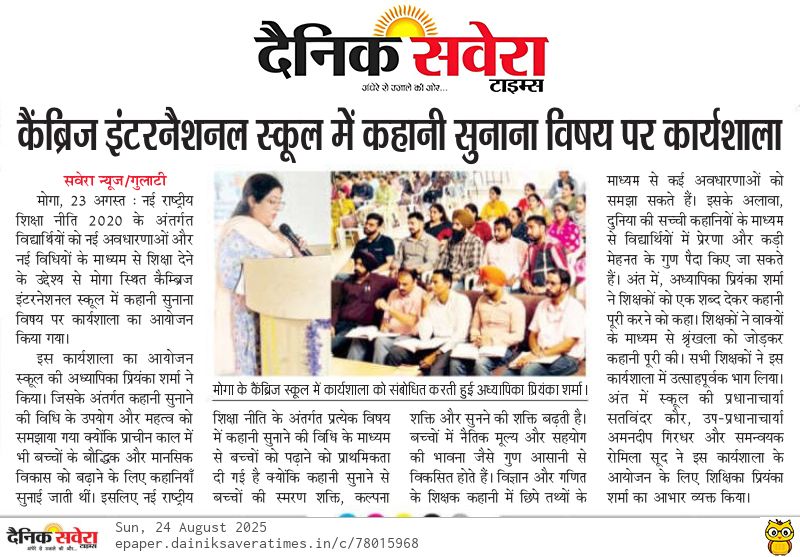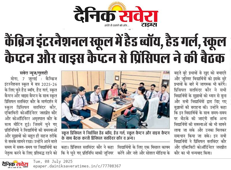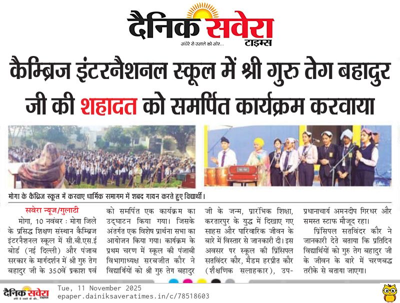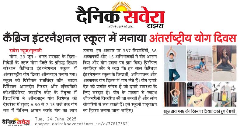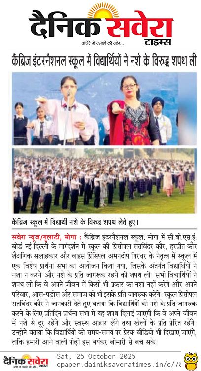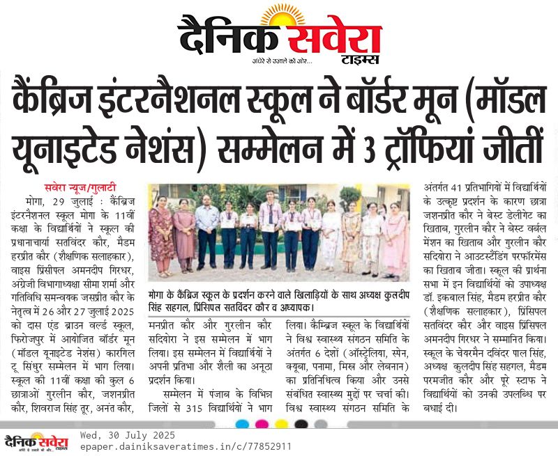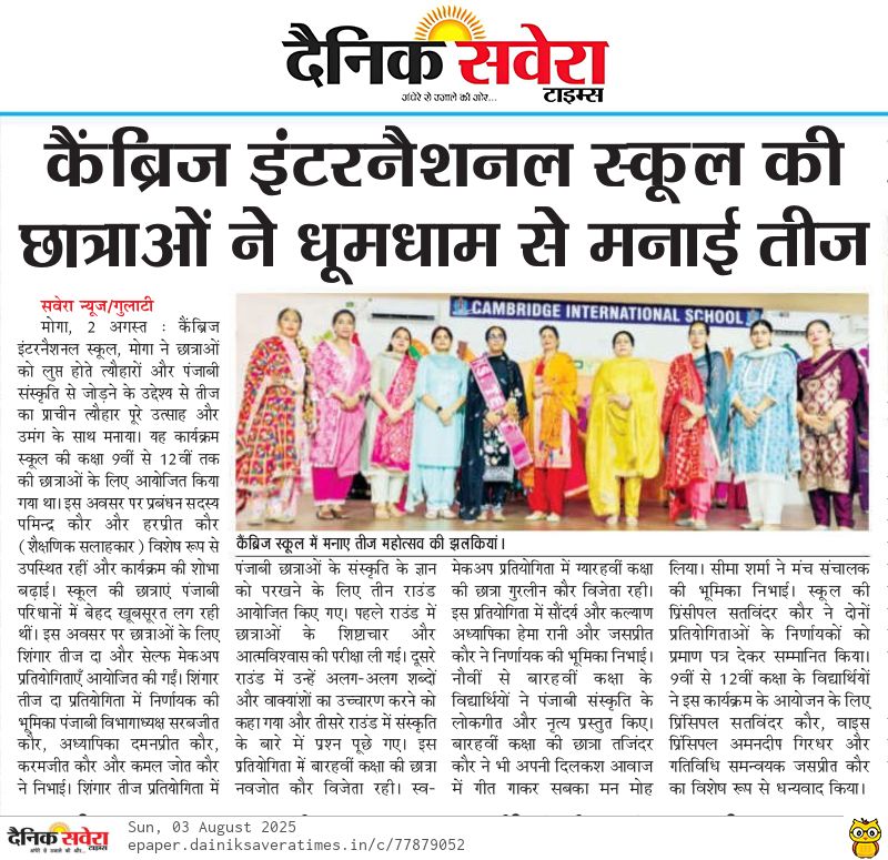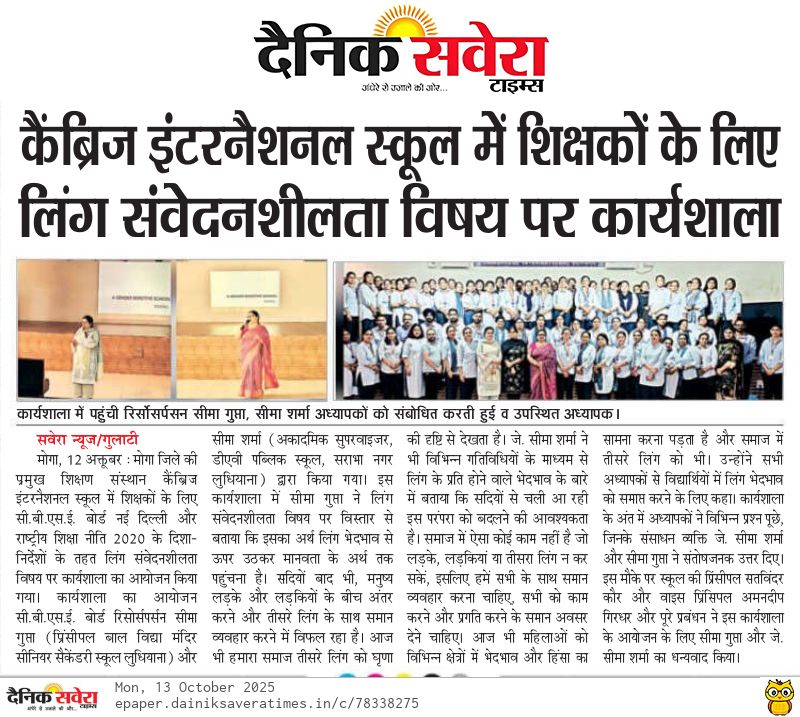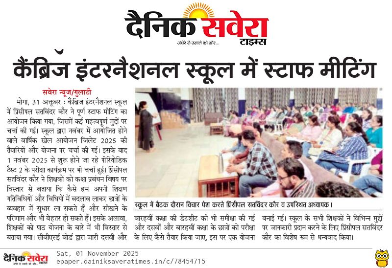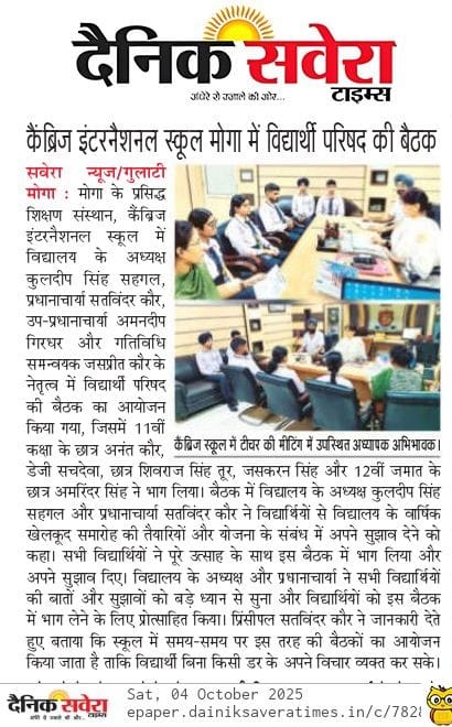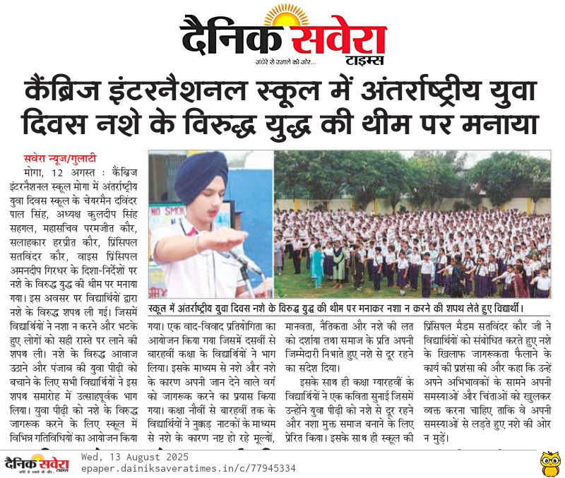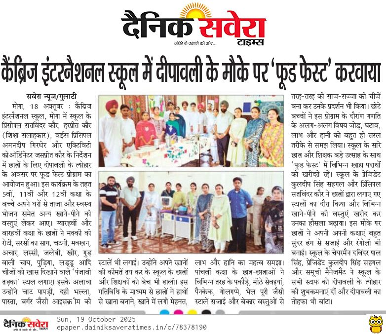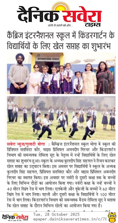 As I walk down the hallways of school every day, I hear the chatter of eager minds, the shouts of excitement from victorious athletes, the thump of dancing feet and sound of melodious voices harmonizing. The perpetual energy, movement and enthusiasm permeate the atmosphere at Cambridge International School ,Moga