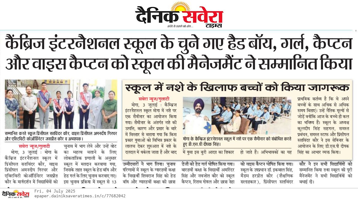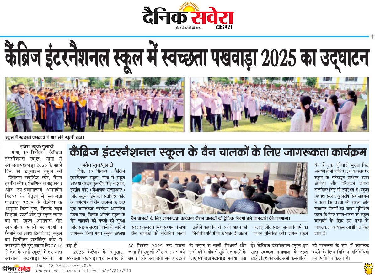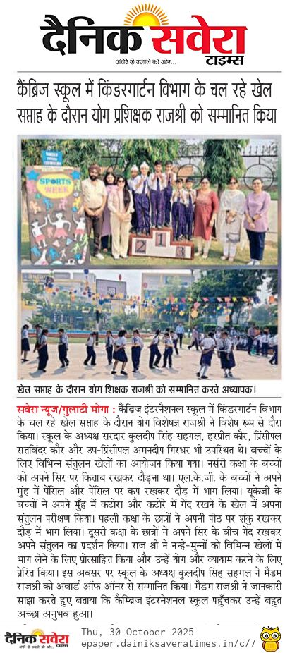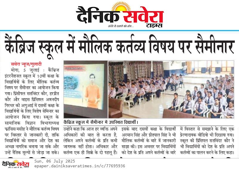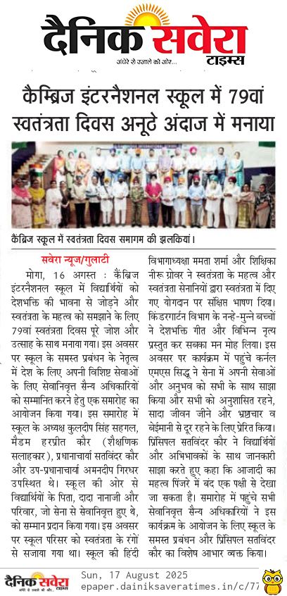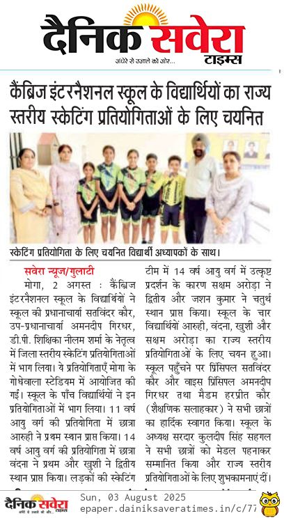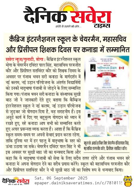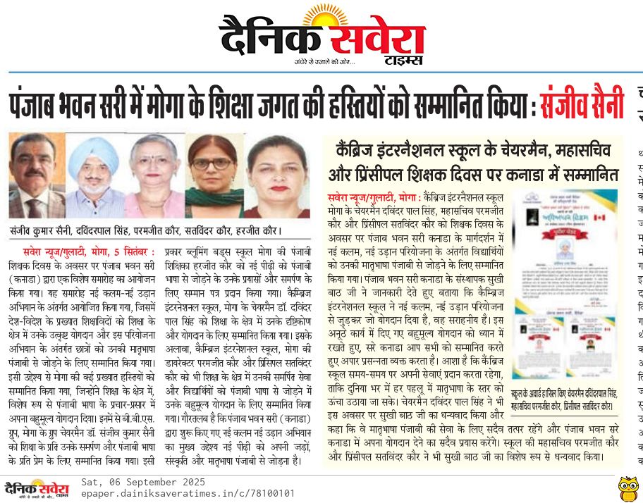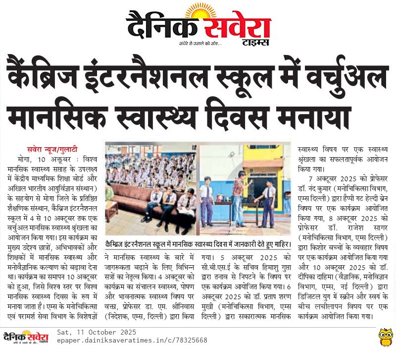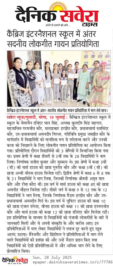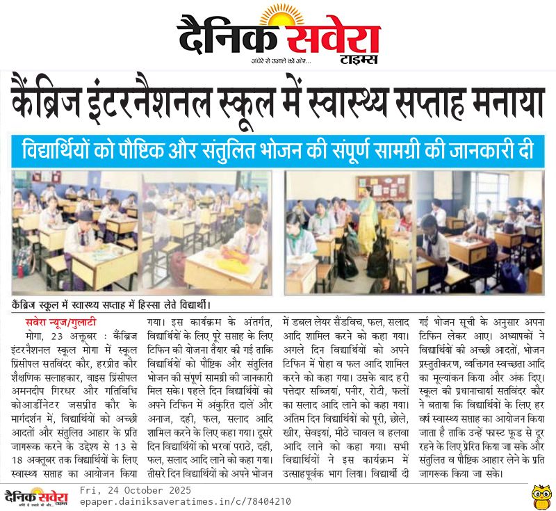 As I walk down the hallways of school every day, I hear the chatter of eager minds, the shouts of excitement from victorious athletes, the thump of dancing feet and sound of melodious voices harmonizing. The perpetual energy, movement and enthusiasm permeate the atmosphere at Cambridge International School ,Moga