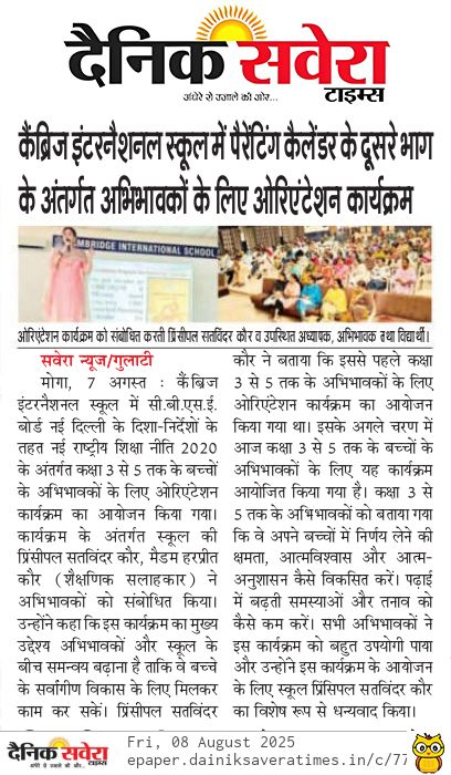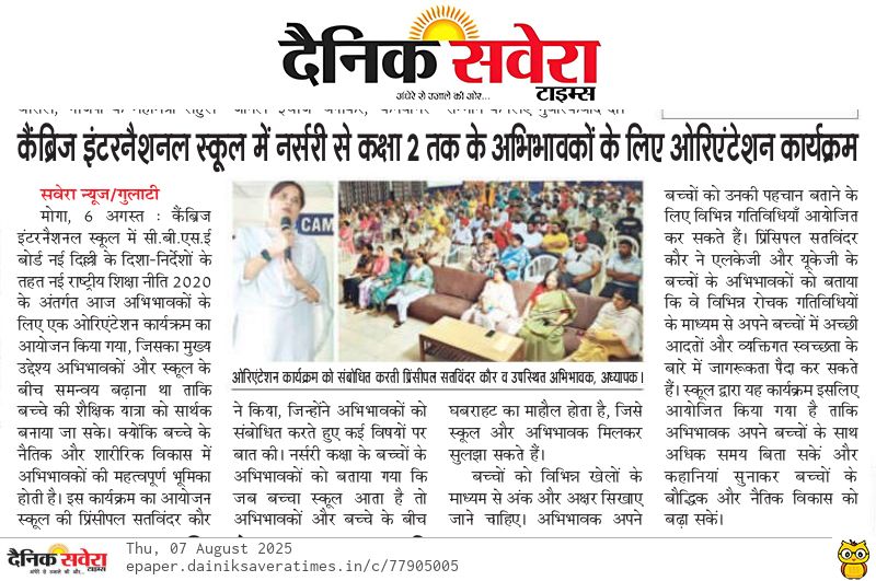 With a vision to deliver 360° global edge education for the emerging talents, Cambridge International School fosters an environment that emphasis on social, emotional, physical, and intellectual development of a child.