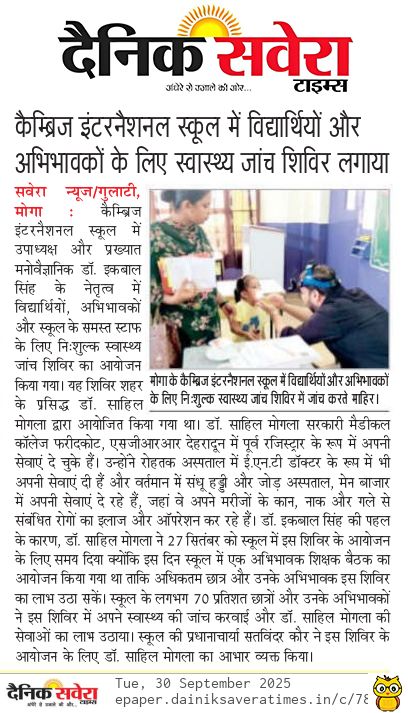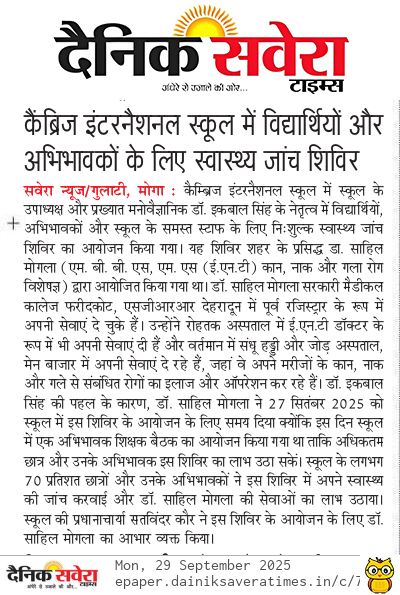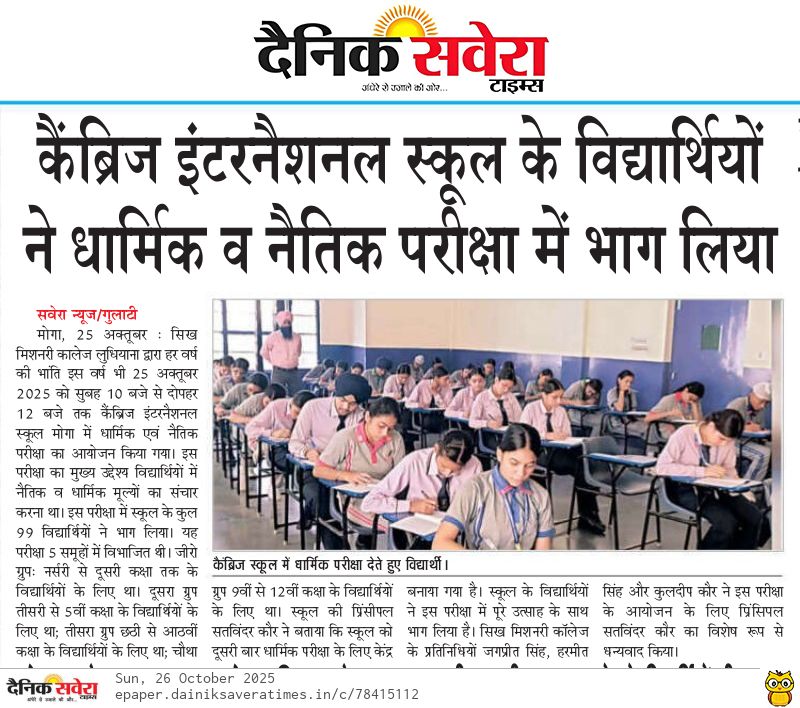It is pleasure to welcome your child to cambrdige International School, Moga (Punjab).